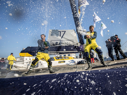 Après 28 jours 23 heures 24 minutes et 46 secondes de mer, Franck Cammas, Charles Caudrelier et le media man Yann Riou ont franchi la ligne d'arrivée à Brest à 10h24min46sec. Une première grande victoire au large pour le Maxi Edmond de Rothschild, qui aura parcouru un total de 17 084 milles, à 24.57 nœuds de vitesse moyenne réelle.