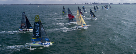 Terme d’une longue pérégrination de 492 milles le long des côtes de la Manche et autour de la pointe de Bretagne, Saint-Nazaire en Loire-Atlantique sacrera le marin le mieux inspiré et qui aura déjoué les innombrables pièges du parcours. En l’absence de bouée de dégagement, les 33 solitaires encore en lice (après les abandons de Robin Marais – Ma Chance Moi aussi - et de Corentin Douguet – NF Habitat) ont entamé au louvoyage l’entrée en Manche et le contournement des deux grands caps de la côte d’Opale, Blanc Nez et Gris Nez. Face aux courants et dans une radieuse lumière, les solitaires parvenaient à s’aligner dans un tempo parfait pour s’élancer dans le coup de canon en tribord amure. Pierre Quiroga (Skipper Macif 2019) s’imposait en costaud au bateau comité et entamait la belle sarabande des virements de bord en route vers la côte d’Opale.