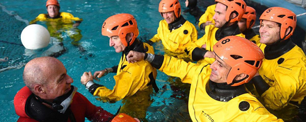 Outre les cas d'hommes entravés, tête à l'envers, les navigateurs ont appris à gérer un incendie à bord durant les trois jours de ce stage mais surtout celui d'un équipier tombé à l'eau.