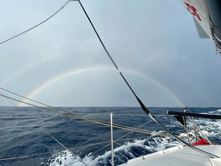 Le Pot au Noir était ... RAPIDE ... pour une fois - je n'ai jamais ralenti. J’ai eu 24 heures de grains qui ont nécessité beaucoup de temps pour gérer le cap, les voiles et leur orientation pour ne rien casser, donc c'était un moment fatigant, j’ai passé deux nuits (presque) blanches. J’ai eu le droit à des éclairs, des coups de tonnerre et… des arcs en ciel. J’ai accumulé beaucoup de fatigue mais la traversée s’est plutôt bien passée globalement