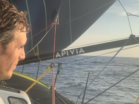 C’est à croire qu’ils se sont tous passés le mot ! Ce 15e jour de course fut celui du grand ménage à tous les étages. L’inoxydable Jean Le Cam, 3eme au pointage, mène d’une main de maître son IMOCA à dérives, de l’autre la lessive de ses chaussettes et caleçons. Six skippers entrés dans le Pot au Noir ce matin (Fabrice Amedeo, Miranda Merron, Clément Giraud, Ari Huusela, Alexia Barrier et Sébastien Destremau) font contre mauvaise fortune bon cœur : les grains gorgés de pluie diluvienne ne sont-ils pas la meilleure des douches après 15 jours à baigner dans le sel et l’humidité ? Bref, le moral est bon à tous les étages du long pendentif de 2 969 milles : le temps passe à toute allure, le mode tour du monde est bien activé, le rythme de la mer est pris. Et parfois un rien illumine la journée : « Je suis passé à côté des îles Trindade et Martin Vaz, ça paraît improbable de trouver un caillou ici au milieu de nulle part. C’était le petit cadeau du matin, au milieu des rayons du soleil, j’ai presque failli m’arrêter ! » souriait Damien Seguin (Groupe APICIL) ce midi.