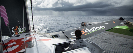 C'est une course très rapide qui s'engagera entre venrdedi et samedi en bordure d'une dépression qui continuera de se creuser dans sa progression vers l'est. En bordure nord-est de la dépression, Sodebo Ultime 3 devrait filer à vive allure avec un cap au sud-est, passant ainsi par le sud du vaste anticyclone.