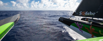 La fin de l’été brésilien se profile pour l’équipage de Sodebo Ultim 3 qui ne devrait pas tarder à changer d’ambiance, puisque d’après la cellule de routage, il sera dès samedi dans les quarantièmes, à l’avant d’une dépression qui devrait le mener rapidement vers l’entrée de l’océan Indien, matéralisée par le Cap des Aiguilles. « Il fait un peu plus frais depuis quelques heures, on sent qu’on plonge dans le Sud et que dans quelques jours, on va remettre les polaires, les bottes, les sous-couches et rentrer dans le vif du sujet de ce tour du monde qu’est le Grand Sud », confirme Martin Keruzoré, le media man, qui, sur ce Trophée Jules Verne, aide aussi l’équipage pour les manœuvres.