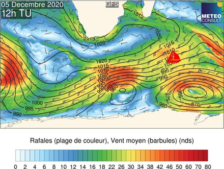 SITUATION METEO DU DIMANCHE 6 DECEMBRE : PASSAGE DES ÎLES KERGUELEN