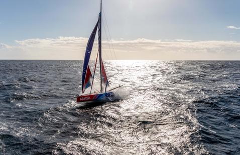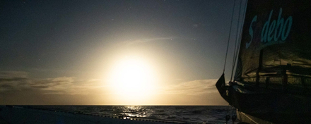 Après une série d’empannages pour rester dans un couloir de vent, ce samedi, c’est une véritable course de vitesse qui s’opère en direction des mers du sud. L’anticyclone de Sainte Hélène n’est plus qu’un lointain souvenir puisque l’équipage de Sodébo prend le train des dépressions très creuses qui sévissent dans les 40ème rugissants. Un puissant flux de nord d’une trentaine de nœuds va propulser les navigateurs à plus de 35 nœuds avec un cap au sud-est et une trajectoire légèrement plus sud que la route directe. Avec ces conditions musclées, dans une mer qui deviendra forte, la concentration des marins sera nécessaire pour bien manœuvrer.