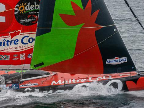 La situation est bien différente pour Thomas Ruyant (LinkedOut) qui tente une voie septentrionale afin d’éviter les calmes qui sévissent sous le centre de la perturbation. Mais arrivera-t-il à conserver ce vent de travers rapide ? C’est malheureusement peu probable et le solitaire devrait alors se recaler plus au Sud pour contrôler le pack emmené par Damien Seguin (Groupe APICIL) qui vient de l’arrière. Ainsi ils ne seraient plus que deux en tête avec une marge oscillant entre 300 et 400 milles, ce qui dans cette situation météorologique, ne correspond qu’à une « petite » journée de mer, les plus véloces ce matin cumulant près de 500 milles quotidiens !