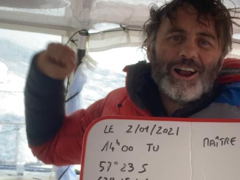 Oui, c’était une délivrance énorme, mais ce n’est pas au Cap Horn que ça l’était vraiment, c’était plus après, une fois que les conditions se sont un peu calmées, parce que c’est sans doute le plus gros coup de vent que j’aie essuyé en bateau de ma vie. Je n’avais jamais eu autant de vent et des vagues aussi grosses, j’ai dû avoir des rafales régulières à 60 nœuds, voire un peu plus, et 8-10 mètres de vagues qui déferlaient. C’était assez dantesque. J’avais pris le parti de ne pas trop réduire car sinon, le pilote n’arrivait pas à barrer, je suis resté à trois ris dans la grand-voile et J3 (petite voile d’avant) pour garder de la vitesse. Le problème, c’était qu’en haut des vagues tu étais à 10 nœuds et que dans les surfs, tu partais à 33 nœuds avec des beaux plantés à l’arrivée, mais au moins, j’allais à peu près droit… C’était impressionnant et beau à la fois, et même si je n’ai pas vu le Cap Horn, j’étais content de le passer parce que je savais que dans quelques heures, ça allait se terminer et que j’allais retrouver des conditions normales. Et c’était quand même un rêve de marin pour moi de franchir ce fameux Cap Horn, même s’il y a forcément un peu de déception de ne pas l’avoir vu, mais je sais que je l’ai passé, c’est marqué dans les livres maintenant !