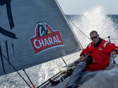 "Ce sont des grains, là, j’ai entre 18 et 38 nœuds, avec un vent qui bascule de 30 degrés à chaque passage de grains. Il n’y a rien qui est très stable.