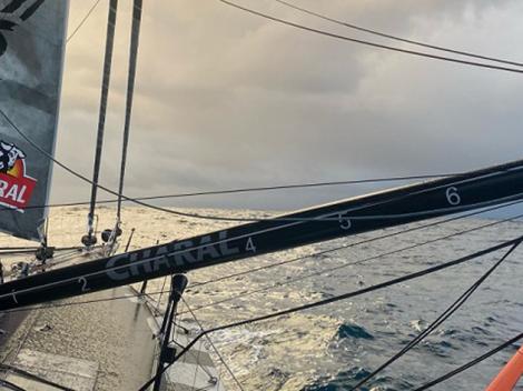 « Ça va. J'ai eu le droit quand même il y a trois jours à une nuit super compliquée dans une petite dépression avec des vents à 40 nœuds et de la neige qui tombait à l'horizontale. Mon pilote automatique n'a rien trouvé de mieux que décrocher à ce moment, le bateau est parti à l'abattée, la situation a été hyper tendue, mais je n'ai heureusement rien cassé. Donc à part ce souci de pilote, qui semble résolu, et mon J2 (voile d'avant intermédiaire) qui est pour l'instant inutilisable, Charal est plutôt en bon état. Ce qui est certain, c'est que jusqu'à l'arrivée, il faut continuer à en prendre soin, parce que l'objectif, c'est de terminer. »