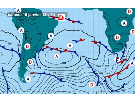 SITUATION METEO DU JEUDI 14 JANVIER : REMONTÉE AU LARGE DU BRESIL DANS UN VENT DE NORD-EST QUI GAGNE QUELQUES NOEUDS