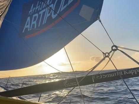 Quatre skippers vont en finir avec leur tour du monde ce jeudi. Arnaud Boissières (La Mie-Câline-Artisans Artipôle) est toujours à la tête d’un groupe composé de Kojiro Shiraishi (DMG MORI Global One) et plus loin, du duo Alan Roura (La Fabrique) et Stéphane Le Diraison (Time for Oceans). « La nuit a été assez tonique » souligne ‘Cali’, qui évoque les difficultés à surfer par plus de 40 nœuds tout en composant avec le trafic maritime.