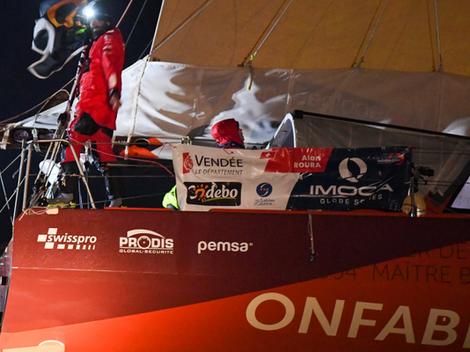 Le marathon des arrivées continue. Et quinze jours après le dénouement de ce Vendée Globe, la même effervescence est palpable sur les pontons. Après l’arrivée d’Arnaud Boissières et Kojiro Shiraishi dans la matinée, c’est Alan Roura qui débarque alors que la nuit est tombée. Jusqu’au bout, le skipper de La Fabrique s’est accroché pour arriver en début de soirée et profiter de la marée pour pouvoir amarrer. Il n’aura finalement pas cette opportunité-là, le chenal étant fermé depuis 20h00, mais l’émotion est forcément palpable : benjamin du Vendée Globe pour la deuxième fois consécutive, il peut savourer, retrouver sa femme et son nourrisson, tout en goûtant au plaisir d’être allé au bout et d’avoir résisté à tout.
