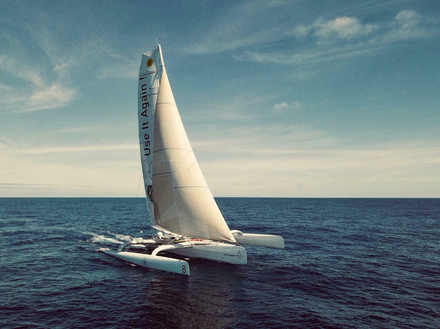 Construit en 2003 pour la britannique Ellen MacArthur, ce trimaran de 23 mètres a été rénové par l’équipe de Use It Again ! dès 2016. Objectif : sauver ce trimaran et réduire au minimum l’impact de son refit sur l’environnement selon les principes de l’économie circulaire : Réduire - Réutiliser - Recycler. Fiable et robuste, c’est aujourd’hui, le bateau idéal pour s’attaquer au Record du Tour du monde à l’envers. Quelle plus belle seconde vie pour ce trimaran de légende, l’un des projets les plus novateurs de l’époque, que de défendre désormais une autre vision de l’avenir. Il est devenu aujourd’hui un exemple concret de l’économie circulaire. Si la sécurité et la fiabilité sont une priorité absolue, le matériel et les pièces du bord sont autant que possible remplacés par de l’occasion, récupérés auprès d’autres équipes ou reconditionnés par des fournisseurs et surtout, la fin de vie de chaque pièce est anticipée.