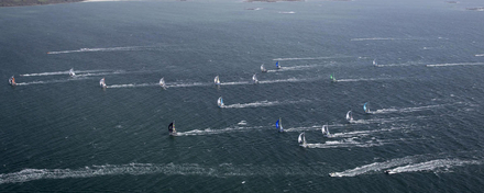 Pour le départ de la course en baie de Port-le-Forêt, les skippers s’élanceront sous un vent de sud-sud-ouest assez tonique de 17 à 20 nœuds avec des rafales de l’ordre de 25 à 28 nœuds. La mer sera peu agitée à agitée avec une houle de sud-ouest de l’ordre de 1,5m pour les premiers milles à parcourir dans la baie de Concarneau.