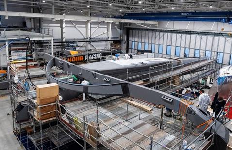 Le trimaran SVR-LAZARTIGUE est actuellement en cours de finalisation dans le chantier de MerConcept à Concarneau. Ce trimaran géant volant, bijou technologique au cockpit inédit, sera mis à l’eau le 22 juillet, aux couleurs de son nouveau propriétaire.