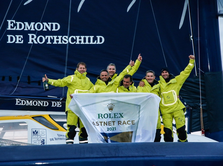 Avec un chrono de 1 jour, 9 heures, 15 min et 54 secondes, l’équipage de six marins établit le premier temps de référence sur ce parcours inédit de 690 milles entre Cowes et Cherbourg-en-Cotentin. Déjà vainqueurs lors de la première édition Cammas et Caudrelier réalisent avec Gitana 17 un doublé qui les fait entrer dans l’histoire de la course.