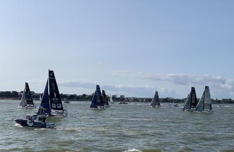 Après un départ dans des conditions idéales dans un flux d’ouest de l’ordre de 12 nœuds, les skippers ont mené une course rapide avec deux premières marques déjà passées au large des îles de Noirmoutier et de Ré. Ils ont profité d’un vent portant et ont effectué quelques empannages au moment de la bascule du vent de nord-ouest au nord-est.