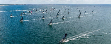 Une bouée plus tard, après un bord au portant très tonique où les skippers ont dû choisir entre le gennaker et le spi, au risque de partir au lof dans les bouffées de ce vent de terre très instable en force. Le skipper helvète était suivi comme son ombre par Gildas Mahé (Breizh Cola), Pierre Quiroga, Martin Le Pape (Gardons la vue), et Pierre Leboucher (GUYOT Environnement - Ruban rose)… Entre autres. Cette entrée en matière tenait toutes ses promesses et se poursuivait de plus belle sur un bord au louvoyage en direction de la pointe de Kerbiscart, devant Lomener, où le rythme des manœuvres s'intensifiait encore. À 14h50, l'heure de parer la dernière marque de ce parcours de chauffe était venue. Cette fois, c'était au tour de Tom Laperche (Bretagne – CMB Performance), toujours aussi impressionnant en vitesse pure, de virer en tête. À ses trousses, la meute de figaristes est maintenant lancée. Cap sur Belle-Ile…