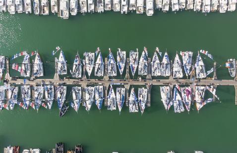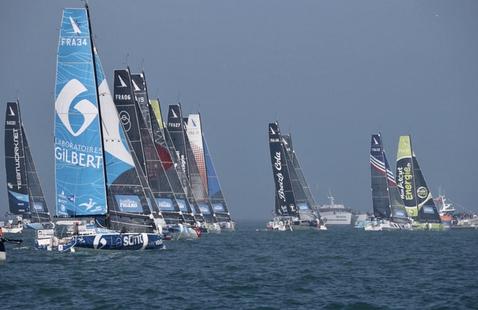 Parti proche du bout de ligne, à gauche du plan d’eau, le bizuth Arthur Hubert (MonAtoutEnergie.fr) signe un très beau départ et arrive en tête à la bouée mouillée à quelques encablures de la promenade de Fécamp, devant un public venu en nombre saluer les 34 solitaires. Depuis la terre, le spectacle est somptueux ! À sa suite, la hiérarchie est globalement confirmée : Pierre Quiroga (Skipper Macif 2019) qui respecte à la lettre ses intentions matutinales, est talonné par Eric Péron (French Touch). Tom Laperche (Bretagne - CMB Performance), Xavier Macaire (Groupe SNEF), Gildas Mahé (Breizh Cola) enroulent à leur tour la marque, affichant leurs prétentions, tous bien décidés à se placer immédiatement aux avant-postes. La course est bel et bien lancée. Les solitaires vont traverser la Manche dans 6 à 8 nœuds de vent avant d’être ralentis à une quinzaine de milles de la première marque anglaise au sud est de l’île de Wight, sans conteste le premier obstacle sur une étape semée d’embûches…