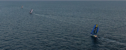 Macaire mène le slow d’une courte tête devant Quiroga et Loison. La flotte s’étire sur 14 milles après une nuit à tenter de faire gonfler les spi. Joints à la VHF du bateau accompagnateur Express, Francis Le Goff explique la situation, Niels Palmieri et Violette Dorange en queue de flotte racontent leurs difficultés.