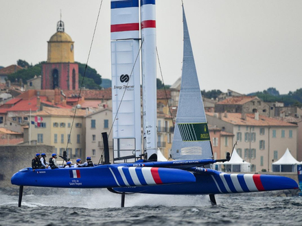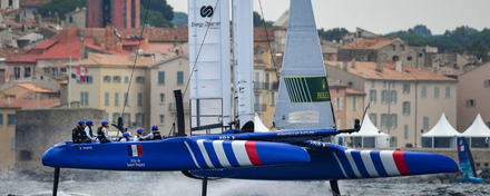 Dans un vent d’Est d’une bonne douzaine de nœuds et un clapot court, les Frenchies ont sillonné la zone des futurs parcours de ce cinquième acte de la saison, slalomant à plus de 35 nœuds entre les superyachts au mouillage. Spectacle garanti pour les plaisanciers et les journalistes venus aujourd’hui à la rencontre de l’équipe. Heureux de faire le show et de partager leur passion avec leurs invités - dont Pierre Casiraghi, navigateur et membre de la famille princière de Monaco - les Bleus ont aussi profité de ce temps de bonus pour se (re)mettre en ordre de marche. « Dès qu’on a 5 minutes sur l’eau, il faut les optimiser et que ce soit productif », concède Thierry Douillard, l’entraîneur de l’équipe. Même si nous avons fait du dry sailing pendant deux jours (répétition des manœuvres à terre) pour que tout le monde se réapproprie son poste via l’imagerie mentale, il faut aussi reprendre ses marques en navigation ». « Nous allons réviser les manœuvres, les classiques et les spéciales », poursuit François Morvan, le contrôleur de vol. Toute la panoplie va y passer. On va faire du foncier pour se remettre en jambe et retrouver des sensations ». Sensations que le barreur Billy Besson jugeait excellentes à l’issue de cette première session à domicile : « Ça a été une super journée ! Ventée, difficile au début avec le clapot qui rendait le bateau instable, mais au fil des deux heures d’entraînement, on a pris la mesure de ces conditions particulières. Nous avons tourné autour de bouées virtuelles, cela nous a permis d’appréhender le plan d’eau avant tous nos concurrents, et ça, c’est un petit avantage non négligeable ! ».