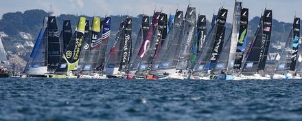 Une fois de plus Arthur Hubert (MonAtoutMonEnergie.fr) réalise un superbe départ, de même que Corentin Horeau (Mutuelle Bleue pour l’Institut Curie) et Xavier Macaire (Groupe SNEF). Le courant de marée descendante demeure le paramètre primordial à prendre compte sur ce parcours côtier de 8 milles.