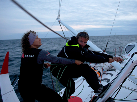 "Après un tour du monde à tout faire soi-même, continuer en duo est résolument un avantage. Naviguer en double c’est avoir la chance de manoeuvrer à deux et donc de dépenser deux fois moins d’énergie à chaque manœuvre. De pouvoir se dire que l’année « post-Vendée » sera une année où je pourrais partager avec quelqu’un toutes les tâches, c’est du luxe.