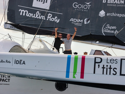 Ce mardi 23 novembre, à 15 heures 28 minutes et 22 secondes en Martinique (20 heures 28 minutes et 22 secondes, heure métropolitaine), Les P'tits Doudous a franchi la ligne d’arrivée de la 15ème édition de la Transat Jacques Vabre en cinquième position de la catégorie Ocean Fifty. Le duo Armel Tripon - Benoit Marie aura mis 16 jours 7 heures 1 minute et 22 secondes pour parcourir les 5 800 milles théoriques depuis Le Havre à la vitesse moyenne de 14,71 nœuds, mais il a réellement parcouru 6782,44 milles à 17,35 nœuds. Son écart au premier, Primonial, est de 17 heures 34 minutes et 8 secondes.