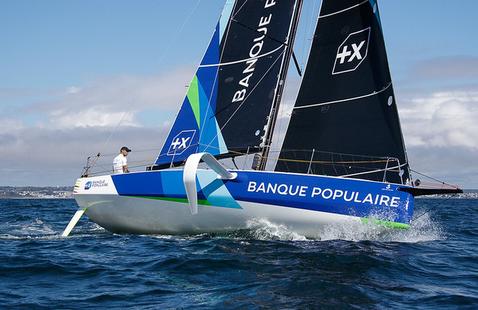 Ce n’est qu’avec le rapprochement de la perturbation, arrivant par le Finistère, que les concurrents vont profiter, à l’approche de l’île de Groix, de la levée très progressive du vent au sud-ouest puis au nord-ouest.