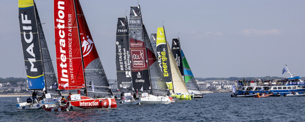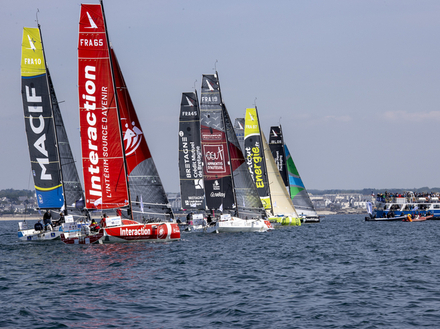 « Les premiers milles vont être plutôt tranquilles mais ça ne va pas être simple de sortir de la baie de Concarneau », a assuré Erwan Tabarly peu avant de larguer les amarres. De fait, c’est mollement que le co-skipper de Devenir et ses adversaires ont débuté la course, ce dimanche après-midi. « Toute la descente jusqu’à l’île de Groix va se faire dans des conditions de petit temps, sur un bord un peu tout droit. On ne va assurément pas battre des records de vitesse sur cette section du parcours mais les choses ne seront toutefois pas aussi simples qu’il n’y paraît », a ajouté l’entraîneur du Pôle France Course au Large de Port-la-Forêt qui n’aura, certes, pas de grandes options stratégiques à jouer sur le premier tronçon du tracé mais qui va cependant devoir négocier au mieux l’instabilité du vent, mais aussi les courants et les dévents des îles. Groix et Belle-Ile pour commencer. « Il y aura la possibilité de se faire piéger mais aussi de gagner du terrain. La vigilance sera de mise ». Un point de vue partagé par Achille Nebout (Amarris – Primeo Energie) : « Le vent va rester très faible jusqu’à ce soir ou jusqu’en début de nuit. Il va être primordial de bien gérer cette période de pétole car elle risque d’être importante pour la suite. Pour cela, il va falloir s’appliquer à bien lire le plan d’eau, soigner les réglages et se relayer efficacement car tout ce qui sera pris ne sera plus à prendre ensuite ».