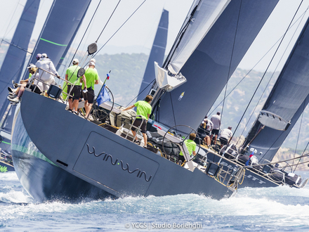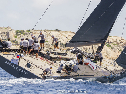 Mercredi, les concurrents ont franchi la ligne de départ située près de l'Isola delle Bisce pour se lancer dans un tour anti-horaire des îles de Caprera et de La Maddalena, soit une trentaine de milles environ. Un parcours magnifique au plus près des îles, avec de nombreuses bascules de vent en fonction du relief. Les deux multicoques présents, le Nigel Irens de 25 mètres Allegra et un tout nouveau Gunboat 68, ont pris le départ au portant, tandis que les monocoques partaient au près vers une bouée de dégagement. Soufflant à 8 nœuds lors du départ, le vent est progressivement monté jusqu’à 15 nœuds au nord de La Maddalena, pimentant le spectacle. Sur la ligne d’arrivée, Mariette devançait assez nettement ses adversaires, qui eux arrivaient extrêmement groupés. Sept secondes seulement séparaient ainsi Win Win de Magic Carpet Cubed. C’est cependant ce dernier qui prenait, déjà, la tête du classement en temps compensé.