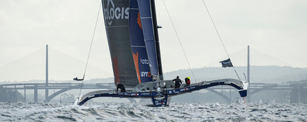 300 milles en moins de 18h : les chiffres valent mieux qu’un long discours. Comprenez que les Ocean Fifty ont « tartiné » souvent à des vitesses hallucinantes sur ce grand tour de la Bretagne : entre 30 et 35 nœuds au max, 25 le plus souvent. Le vent de sud-ouest tonique et la grosse mer leur ont demandé une certaine prudence notamment aux abords d’Ouessant, mais n’ont pas empêché les cadors de la voile d’attaquer et de faire marcher leur monture à 100% de leur potentiel. Leyton a donné le ton d’emblée : voilure maximum, qui m’aime me suive ! Une cadence infernale que Primonial et Arkema acceptaient de bonne grâce. Mais ce « Défi 24h en Finistère » a connu quelques péripéties notoires : Solidaires En Peloton-ARSEP cassait son grand gennaker avant la nuit, et terrible coup du sort, Koesio tombait en panne sèche d’électricité quelques minutes après le départ de Brest… Groupe GCA-1001 Sourires, jouant la prudence au maximum et la navigation « en bon marin », se retirait de la course dans la matinée, probablement hors temps dans tous les cas, s’il avait rejoint la ligne d’arrivée. N’empêche, le constat est clair : malgré les pépins du bord, les écarts sont incroyablement minimes, comme les 6 mn qui séparent Solidaires En Peloton-ARSEP de Koesio. Vous avez dit régate au contact ?