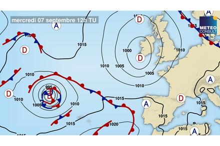 Avec le rapprochement de la dépression en mer celtique, la traîne s’orientera à l’ouest sur nord Gascogne. Elle maintiendra un courant très perturbé d’ouest-sud-ouest pour 20 nœuds, avec des rafales sous grains pouvant monter jusqu’à 35 nœuds.