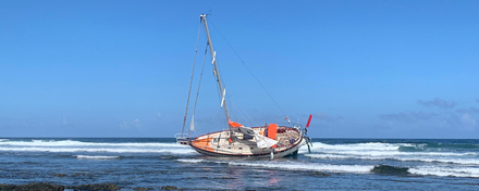 Lundi matin, à 9h30, j’ai rendez-vous avec une grande société de sauvetage afin d’envisager le meilleur plan d’action qui, à ce stade, consiste à tracter le voilier sur les rochers durs, mais heureusement pas sur des récifs fragiles, ajoute Guy deBoer