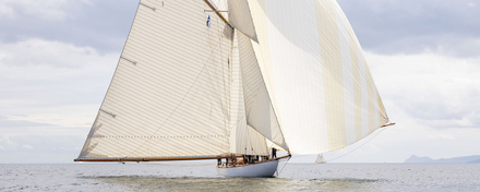 Quant aux critères d’entrée, on pourrait même presque dire de sélection, ils sont dignes d’un concours d’élégance automobile. Les voiliers, ou plutôt les yachts, qui seront admis à participer doivent avoir été construits avant le début de la seconde guerre mondiale, soit 1939, ou être des répliques extrêmement fidèles. Leur taille minimale doit être de dix mètres à la flottaison, ce qui entres les élancements et les bout-dehors distinctifs des dessins de l’époque, peut donner des longueurs hors tout de plus de 15 mètres. Par exemple, Sibyl of Cumae un plan Fife de 1902 s’il ne fait que 34’5 ‘’(10.50m) au niveau de l’eau, mesure près de 15.70m de l’extrémité de son long tableau arrière inversé à l’extrémité de son magnifique bout-dehors verni. Aucune longueur maximale n’est en revanche annoncée, et les trois sociétaires de la Team Fife brestoise devraient donc notamment être au rendez-vous. On pense bien sûr à Mariquita, le premier 19M de Jauge Internationale, soit 125’ (38 mètres) de longueur hors-tout, dessiné et construit en 1911 par Peter Dickie, que Jacques Caraës menait de mains de maître dans le Firth of Clyde en juin dernier. Les deux plans Fife Moonbeam III (1903) et Moonbeam IV (1914) qui naviguent eux-aussi désormais sous pavillon français, pour na pas dire breton, devraient également être de la fête. On pourrait aussi y retrouver Mariella, construit par le chantier des Fife en 1938, mais dessiné par Alfred Mylne, même si sa présence au dernier rassemblement Ecossais semblait une exception dans son programme habituellement soigneusement réparti entre Antilles et bassin méditerranéen.