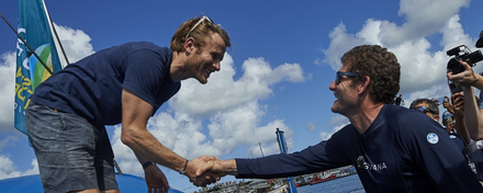 L’année avait très mal commencée, puisque c’est dans les prétoires que le duel a débuté, par sponsor et classe interposés. Le collectif Ultim jugeant le bateau de François Gabart non-conforme, le partenaire de ce dernier, SVR-Lazartigue du groupe Kresk dirigé par Didier Tabary, porte l’affaire devant le tribunal. Celui-ci ne se prononce pas sur le fond, mais impose qu’une dérogation soit accordée au trimaran bleu pour qu’il puisse courir la Route du Rhum à l’automne. Les deux skippers se retrouvent donc directement en finale et le match attendu a bien lieu, passionnément intense. Charles Caudrelier l’avouera, François Gabart l’aura mis sous tension en permanence entre Saint-Malo et Pointe-à-Pitre. Contrairement à ses autres concurrents admis eux au sein de la classe, avec qui il s’est entraîné ou auxquels il s’est confronté en course durant l’année, il ne sait pas vraiment où en est le franc-tireur Gabart dans le développement et la maîtrise de son trimaran volant. Alors il multiplie les manœuvres, parfois jusqu’à l’excès comme au niveau des Açores au niveau desquelles il perd la tête de la course pendant quelques heures. Les deux hommes poussent leurs machines au-delà de toutes les limites qu’ils s’étaient promis de ne pas franchir. Et à la fin c’est le bateau le plus fiabilisé qui gagne. Même si l’écart est faible et que le tour de la Guadeloupe est piégeux, Charles Caudrelier l’emporte avec trois heures d’avance. La poignée de main entre les deux immenses marins à l’arrivée est des plus sincères. Fasse que 2023 ne les voit s’écharper que sur l’eau, c’est tellement plus passionnant !