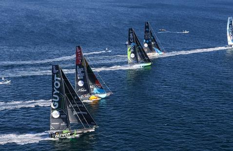 Avec le faible front météorologique qui est passé sur la zone de départ plus tôt dans l'après-midi, les conditions de vent avaient commencé à se stabiliser autour des 12-14 nœuds, de nord / nord-ouest pour le départ des cinq IMOCA. Dès le départ, c’est Biotherm (FRA) de Paul Meilhat qui a donné le rythme. Lancé sur ses foils, le spectacle était impressionnant, d'autant plus que la semaine dernière, cet équipage naviguait pour la première fois ensemble à bord d'un bateau qui venait d'être mis à l'eau. Derrière Biotherm, le Team Holcim-PRB (SUI) de Kevin Escoffier l’a rapidement rejoint, les deux bateaux naviguant à un rythme soutenu à plus de 29 nœuds. Le bateau 11th Hour Racing Team (USA), skippé par Charlie Enright, est remonté de la dernière à la troisième place. On voit là, l'expérience qui se fait déjà sentir pour une équipe que beaucoup considérait comme favorite. Alors que 11th Hour Racing Team se rapproche de la tête de la flotte, le Team Malizia de Boris Herrmann (GER) s'est retrouvé derrière en dépassant GUYOT environnement Team Europe (FRA/GER), skippé par Benjamin Dutreux qui a rencontré un problème de voile d’avant (code zéro), ce qui l'a obligé à réduire la vitesse pour résoudre rapidement le problème. Quelques heures après le départ, la flotte des Imoca a dépassé celle des VO65.