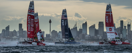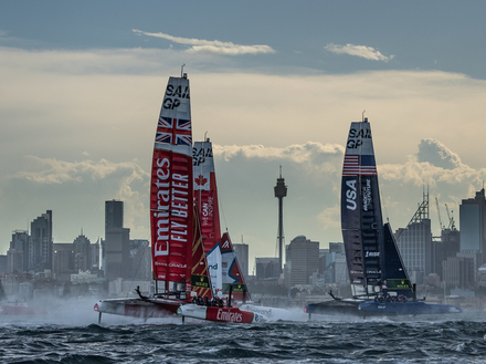 Triplé français le premier jour de régate, équipier à l’eau chez les Britanniques, coup de vent destructeur sur le village de course puis l’équipe menée par Quentin Delapierre finalement déclarée vainqueur d’un Grand Prix qui restera sur ses trois manches initiales : les émotions ont été fortes ce weekend sur le mythique plan d’eau Australien. Tout avait pourtant si bien commencé. En cette fin d’été Austral, certes les conditions étaient musclées pour ces formidables Formule 1 des mers, plus de 25 nœuds de vent, et ce qui sera finalement la seule journée de régates a été marquée par les soucis techniques, et des manœuvres parfois tellement limites qu’on a frôlé le chavirage plusieurs fois. On a surtout frôlé le drame à bord du catamaran volant Britannique quand Matt Gotrel, déséquilibré lors d’un empannage est passé à travers le carénage du bras avant. Retenu par sa ligne de vie, à haute vitesse sous le bateau, il était comme un pantin désarticulé au bout d’un câble, à toute proximité de deux foils acérés, le temps que Ben Ainslie arrête le bateau. Rehissé à bord par ses coéquipiers, solide et pas impressionné par sa cascade, le wincher insista pour qu’ils repartent, et ils réussirent à terminer la manche en sixième position, là où une dernière place leur semblait promise. Dans ce haut de fourchette des conditions maîtrisables sur ces catamarans de 50 pieds volants, ce sont les équipages français et Américains qui s’en sont le mieux sortis, et les premiers ont même été impériaux avec trois victoires en trois manches disputées, l’équipe de James Spithill engrangeant autant de secondes places. L’équipe française est finalement déclarée vainqueur du Grand Prix Australien après seulement une journée de régate car une violente tempête a endommagé bateaux et ailes samedi soir. En pleine manutention, les images de l’aile du bateau Canadien, hors de contrôle suspendue à sa grue, et venant détruire les installations temporaires des équipes sont impressionnantes. C’est un véritable miracle qu’il n’y ait pas eu de blessés, mais les dégâts sont suffisamment importants chez les différentes équipes pur que le Grand Prix de Nouvelle-Zélande à venir et la Grande finale de San Francisco s’écrivent encore en pointillés. Une victoire au goût un peu amer pour Quentin Delapierre et son équipe donc, mais une victoire quand même, qui confirme leur progression, augmente leur confiance et leur emprise psychologique sur leurs adversaires, tout en les positionnant sur le podium (3ème) de la saison en cours.