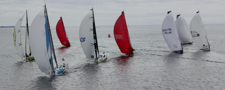 Un à un, sous les applaudissements du public, les 11 Figaro BENETEAU 3 ont quitté ce dimanche le quai Carnot aux alentours de 10h30. Le spectacle a continué avec un parcours spectaculaire qui visait à mettre en valeur les coureurs. Après un départ en baie de Port-la-Forêt et une première bouée à contourner devant Cap Coz, la flotte a mis le cap sur le chenal d’entrée du port de Concarneau pour passer devant la ville close avant d’attaquer la descente et de s’élancer à l’assaut du Golfe de Gascogne.