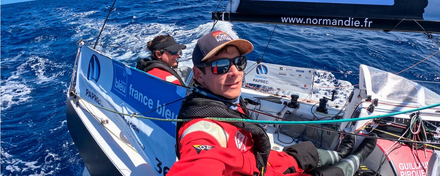 Même sentiment à bord de Région Normandie, en embuscade dans le groupe de tête. Guillaume Pirouelle parle de son côté de « train-train » dans des conditions « assez cool » qui lui permettent de « ne pas être trop fatigué ». À la direction de course, Francis Le Goff s’amuserait presque : « Je pense que les skippers vont en avoir un peu marre de leur ‘tribord’ ». De fait, les conditions du moment sont propices au statu quo et à une progression constante.