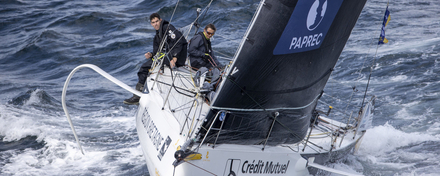 La nuit de lundi à mardi a été principalement marquée par un changement de leader. Situé à 7,5 milles plus au nord en latéral que ses concurrents directs, Région Bretagne – CMB Performance (Gaston Morvan/Anne-Claire Le Berre) a gagné son pari et repris pour le moment les commandes de la course. « Faire du tribord est plus délicat. Ce n’est pas un bord qui rapproche de Saint-Barthélemy, c’est plus nord et ce n’est pas simple à faire, mais c’est un avantage non-négligeable », explique Yann Chateau, le Directeur de Course Adjoint, qui estime que leur avance pourrait perdurer sauf si le duo devait faire face à des grains récalcitrants. « Skipper MACIF et Mutuelle Bleue sont très proches. Il va falloir qu’ils fassent attention à Région Bretagne – CMB Performance qui est globalement un peu plus offensif et qui tente des choses depuis deux jours. Ils ont une dynamique positive à bord. Les deux autres sont à fond sur la vitesse mais ils se suivent tous, observe de son côté le Directeur de Course, Francis Le Goff. Derrière, ils ont un peu d’air. Ça va être moins difficile pour eux de négocier la zone de vent faible que traversent ceux qui sont devant ».