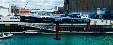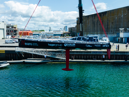 Un nouveau bateau pour un nouveau départ. Fabrice Amedeo et son équipe ont mis à l’eau ce mercredi à Lorient le nouvel IMOCA « Nexans - Art et Fenêtres » en vue du Vendée Globe 2024. Un bateau que le skipper, son équipe et ses partenaires ont voulu sobre, simple et fiable. Il s’agit de l’ancien bateau de Mike Golding, construit en vue du Vendée Globe en 2008. Ce bateau était récemment passé entre les mains d’Arnaud Boissières qui lui avait fait mettre des foils en vue de la dernière édition de la circumnavigation planétaire. Durant ces six mois de chantier, l’équipe a supprimé ses foils pour l’équiper de dérives, considérablement allégé le bateau et a changé toute son électronique ainsi que ses pilotes automatiques. Le bateau a également été paré du bleu nuit, la couleur du projet Ocean Calling. C’est donc finalement un bateau neuf avec une carène ancienne qui est sorti ce mercredi 12 juillet du hangar H2 de la Base des sous-marins de Lorient.