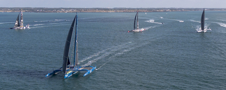 C’est parti pour une belle course de vitesse au contact, à bord de ces Ultim qui commencent à déjauger et à faire une jolie démonstration de leur potentiel spectaculaire dès l’entame du grand bord de portant, qui doit les mener jusqu’à Ouessant. Les images sont magnifiques. Elles font le bonheur des spectateurs réunis à bord des très nombreuses embarcations, qui ne rateraient pour rien au monde ce grand show sur l’eau… D’aussi courte durée, soit-il ! Difficile en effet d’imaginer suivre ces paires de skippers qui ont déjà passé la surmultipliée. Une heure plus tard, SVR-Lazartigue, Banque Populaire XI et le Maxi Edmond de Rothschild ont déjà doublé la cardinale sud de la Jument par le travers des Glénan. Leur beau ménage à trois ne fait que commencer, alors qu’Actual Ultim 3, qui fait preuve d’une belle force de résistance, concède déjà un petit retard qui menace de se creuser dans les prochaines heures.