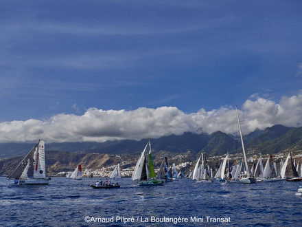 Sans surprise, c’est dans de tous petits airs (entre 2 et 5 nœuds) que le départ de l’étape 2 – Air Caraïbes de La Boulangère Mini Transat a été donné ce samedi après-midi, au large de Santa Cruz de La Palma. D’emblée le ton a donc été donné pour les solitaires qui vont devoir faire preuve de patience et d’opportunisme lors des prochaines 24-36 heures pour s’extraire de l’archipel des Canaries. L’enjeu ? Réussir à déjouer au mieux les dévents des îles, et en particulier celui de Tenerife dont le point culminant s’élève à 3 715 mètres d’altitude. « Les effets du Teide se font ressentir à plus de 60 milles. Les marins vont devoir essayer de trouver le meilleur passage. Ce ne sera pas si facile, d’autant qu’ils vont aussi devoir composer avec de la molle la nuit prochaine », explique Denis Hugues, le Directeur de course qui prédit donc un début de course au ralenti pour les Ministes. Des Ministes qui, lundi soir après le contournement de El Hierro qu’ils ont l’obligation de laisser à tribord, obliqueront leurs trajectoires vers le nord-ouest pour aller chercher un petit front. Une zone de contact entre deux masses d’air dans laquelle ils récupéreront alors un peu de pression avant de remettre du sud dans leur route pour rejoindre le fameux way-point ajouté sur le parcours afin de les contraindre à ne pas s’engouffrer dans une route trop nord au risque d’y rencontrer des petites dépressions tropicales.