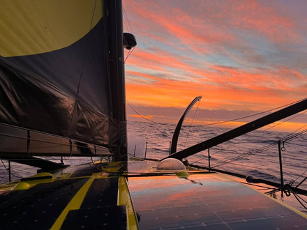 À bord de son IMOCA Fortinet - Best Western, Romain Attanasio a d’ailleurs eu une bonne piqûre de rappel que le solitaire a du bon, et qu’il faut le savourer. Croisant la route d’un cargo au milieu de l’Atlantique, il a été obligé de se mettre plein vent arrière, quasiment à l’arrêt, pour le laisser passer… « Il n’a pas voulu bouger ni sa trajectoire, ni sa vitesse, pas très sympa mec ! »