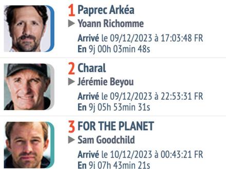 Un peu moins de 2h plus tard dans la nuit lorientaise, Sam Goodchild signera la 3ème position. A la barre de For The Planet, dont il a pris les rênes en avril seulement, il s’arroge avec l’art et la manière son sixième podium de la saison 2023… et le premier en solitaire ! Une performance d’exception, chaleureusement saluée par le public, son équipe et ses proches, qui lui vaut au passage de remporter le classement annuel IMOCA Globe Series. Le navigateur britannique de 34 ans s’offre un grand chelem de podiums sur la saison 2023, et remporte haut-la-main le championnat IMOCA Globe Series 2023. Pas mal pour un « bizuth » du monocoque de 60 pieds, qui aura donc démontré en moins d’un an son talent et sa régularité, que ce soit en équipage, en double ou en solo !