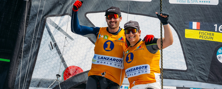 Erwan Fischer et Clément Péquin avaient déjà marqué les esprits en juillet dernier en remportant l’argent lors du Test Event à Marseille. Depuis mardi, c’est à Lanzarote aux Canaries que le duo a pu s’exprimer pleinement, confirmant leur très haut niveau. Pendant tout le Championnat du monde, les athlètes entrainés par Françoise Lecourtois, ont dominé l'épreuve avec une extraordinaire régularité. Ce dimanche Erwan et Clément continuent d’impressionner tant par leur vitesse que par la tactique et s’offrent une magnifique victoire sur la dernière course, devenant ainsi champions du monde avant la Medal Race !