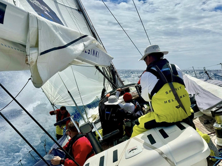 Cependant, les Finlandais de Spirit of Helsinki FI (71) et l’équipage de Maiden UK (03) bénéficient également de vents favorables et sont prêts à saisir leur chance. Seuls 60 milles marins les séparent, et ils sont clairement engagés dans une course parallèle qui pourrait bien rivaliser avec la dynamique complexe se dessinant entre Pen Duick VI et Translated 9 !