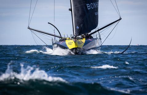 La suite s’annonce sacrément sportive. « Un vent de secteur Nord, Nord-Ouest va rentrer et il sera très soutenu, jusqu’à 35 à 40 nœuds, souligne Nicolas Lunven. Ça va être tonique toute la journée ce mardi ». « Ils sont dans la traîne d’une dépression avec des grains, beaucoup d’instabilité, ça va avancer très fort », précise Miranda Merron. Et ça risque de durer : « ce sont les 24 prochaines heures qui seront dures. La dépression se déplace vite vers l’Est avec des grains, beaucoup d’instabilité… Après une nuit à manœuvrer dans le petit temps, tous se préparent à une journée très dure, d’autant que les compteurs vont s’affoler ».