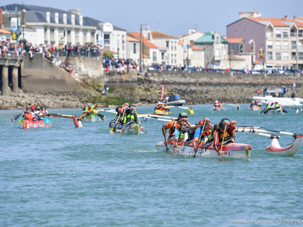 Cette course de pirogues polynésiennes en haute mer rassemble plus de 200 rameurs. Iden- tifiée comme l’épreuve la plus difficile au monde selon les compétiteurs, elle accumule le froid, les vagues courtes et des vents contraires. À l’occasion de l’épreuve sportive, un volet culturel est proposé au public pour faire découvrir la culture polynésienne et les valeurs essentielles du va’a. Durant 4 jours une ambiance chaleureuse et colorée règne grâce à des animations et un village polynésiens. Chaque année, des milliers de spectateurs viennent vivre au rythme des coups de rames et du tamuré, envoûtés par la bonne odeur de monoï ! Depuis 2020, la Vendée Va’a s’engage pour la planète avec des actions concrètes en interne et le soutien d’associations œuvrant pour la restauration des écosystèmes marins. Pour mener à bien cet événement de réputation internationale, plus de 300 bénévoles s’investissent chaque jour auprès des organisateurs, des coureurs et des spectateurs.